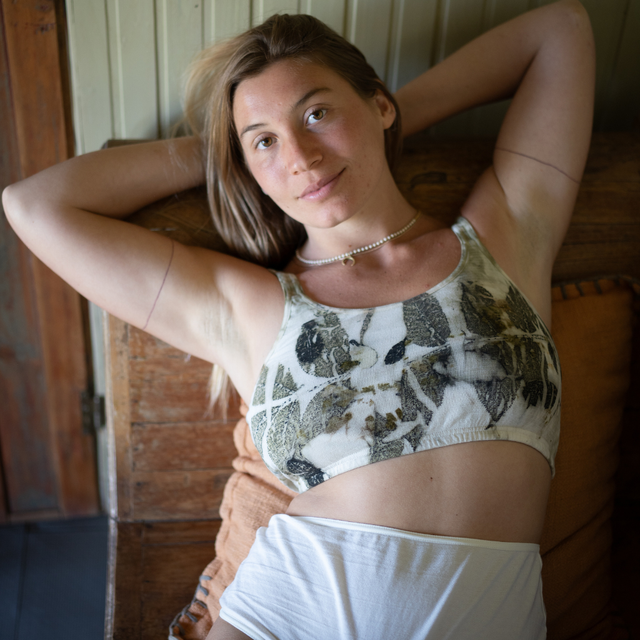 La versión ECOPRINT de tu top preferido. El top Vital Flora te permite llevar en tu piel la escencia del bambú y los colores de la naturaleza juntos en una pieza exclusiva.